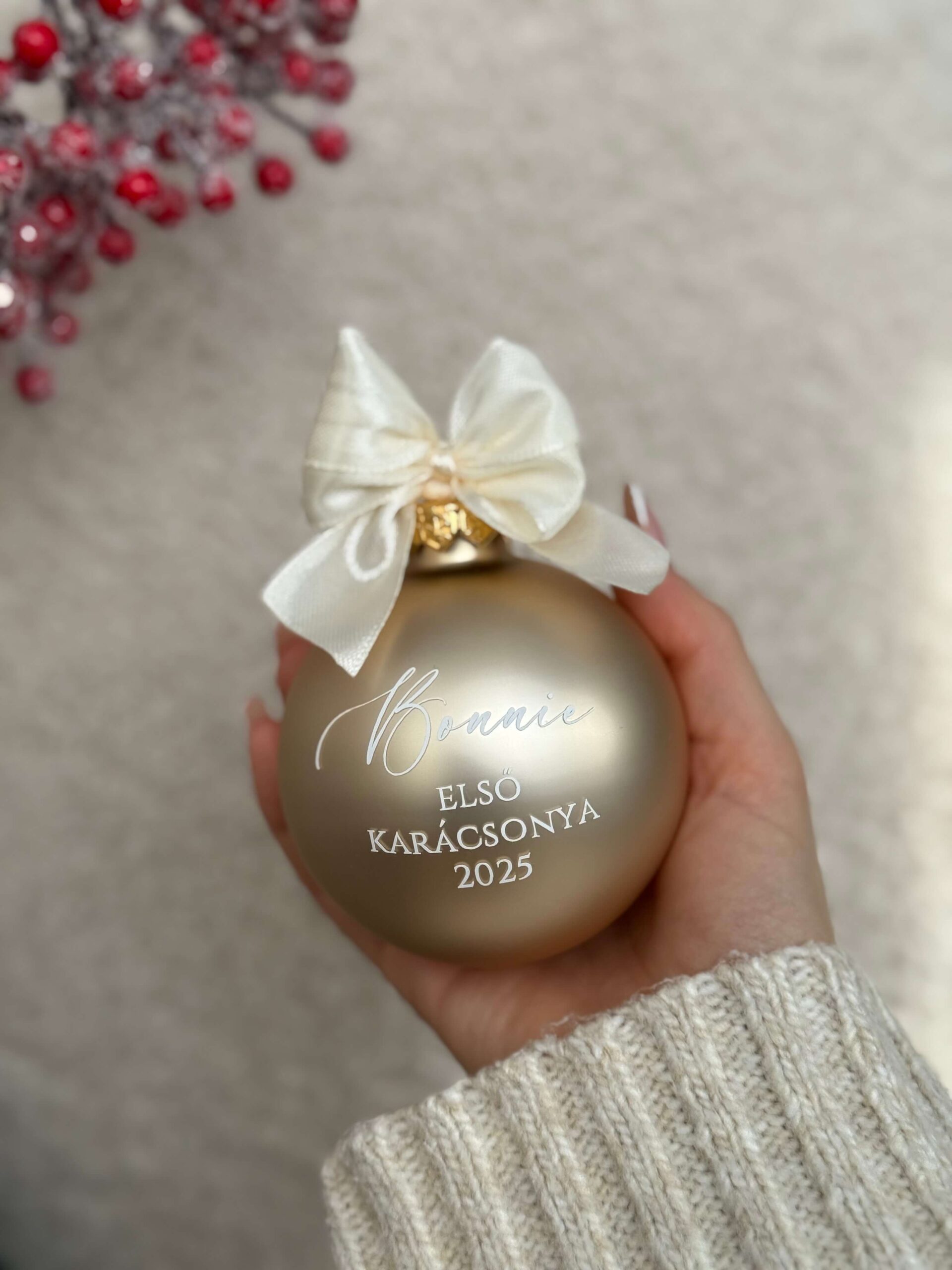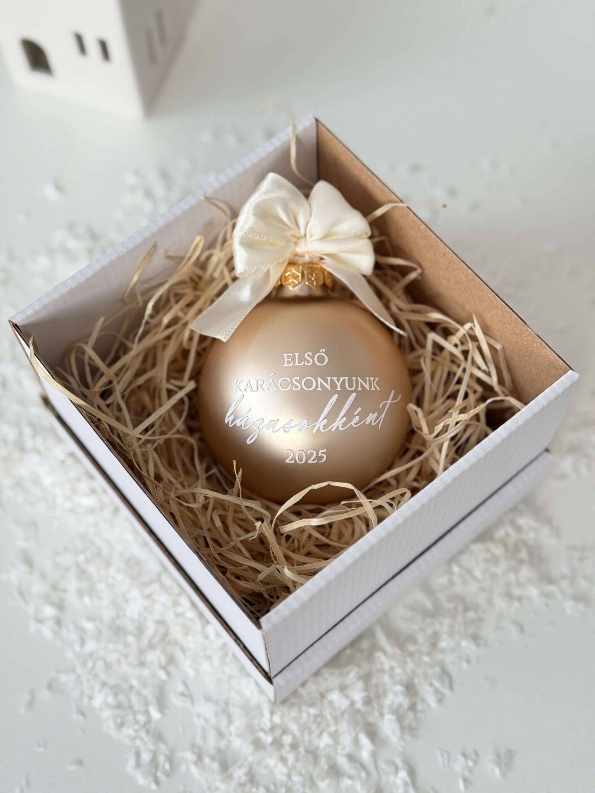 A gömb átmérője 8 cm, melyre maximum 4 szóból álló felirat kérhető.