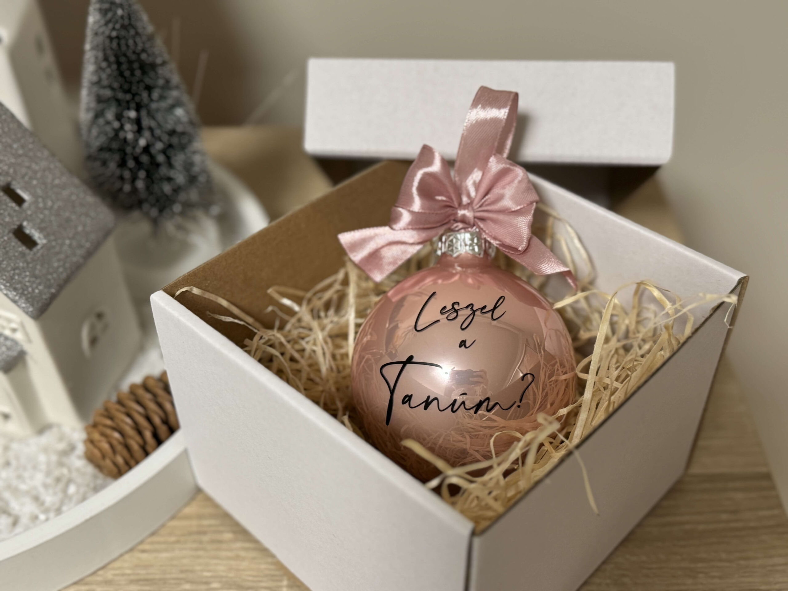 A gömb átmérője 8 cm, melyre maximum 4 szóból álló felirat kérhető.