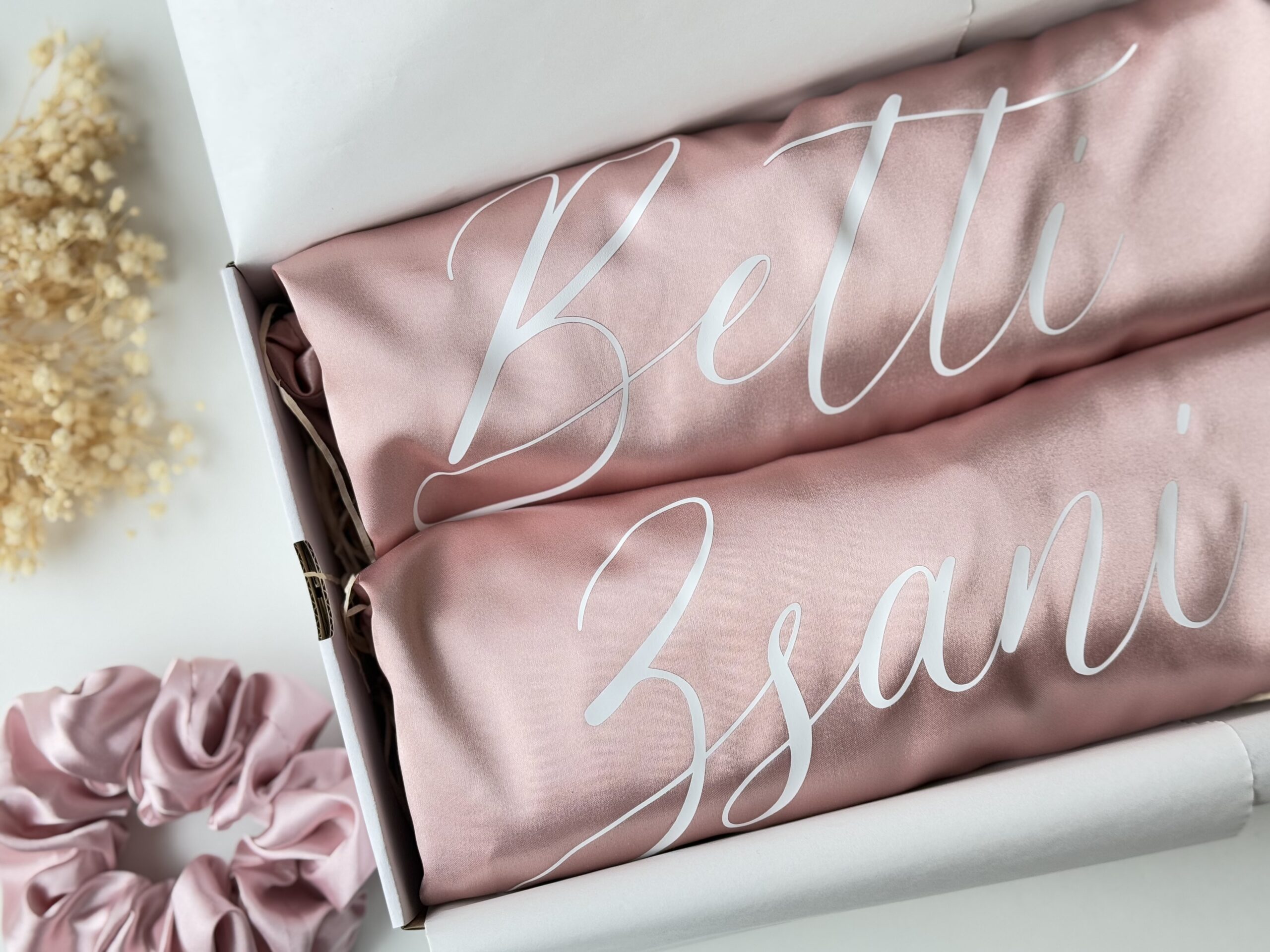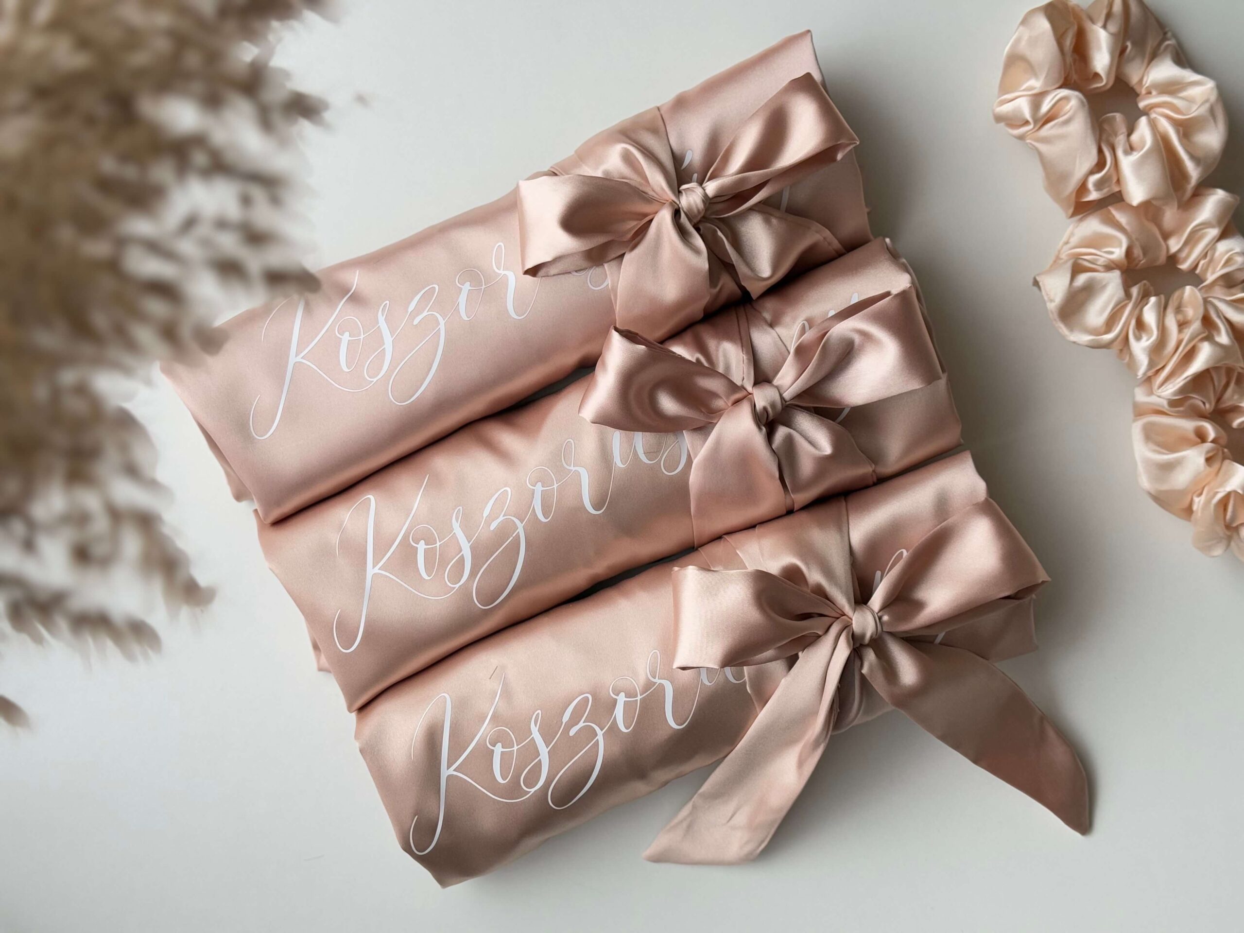 Elegáns, egyedi szatén köntös, mely elengedhetetlen a nagy napon való készülődéshez.
