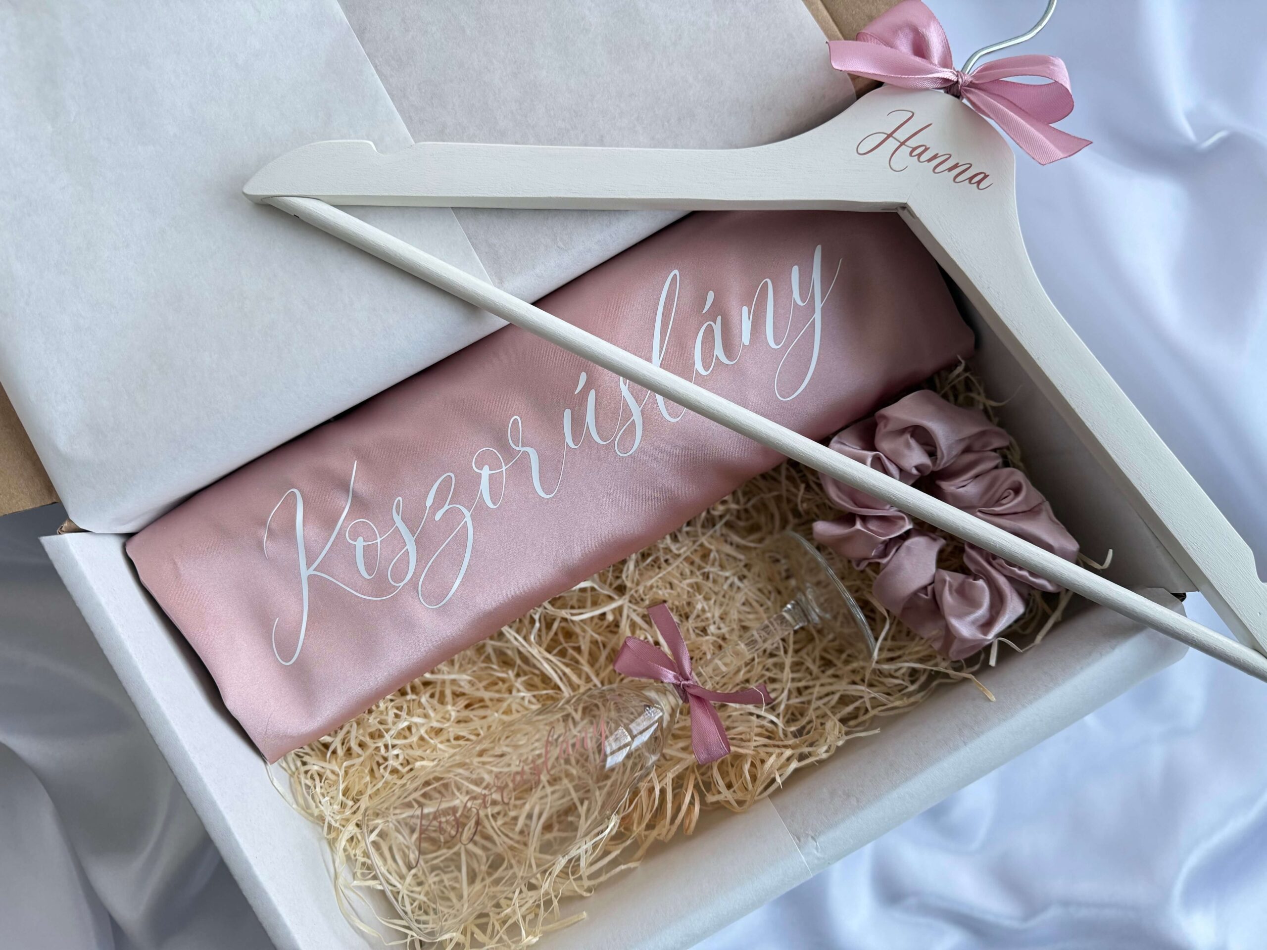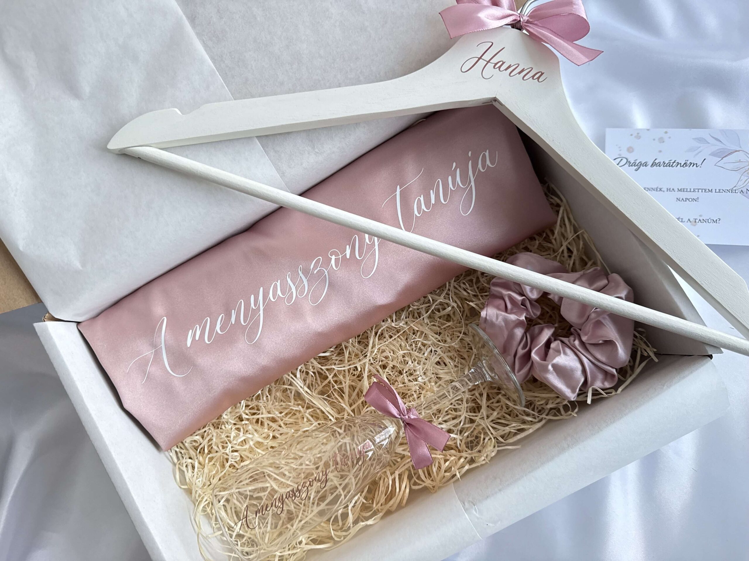 Kérd fel a koszorúslányaidat vagy a tanúdat ezzel a különleges, egyedi felkérő boxszal, így egyenszettben készülődhettek az esküvő reggelén.