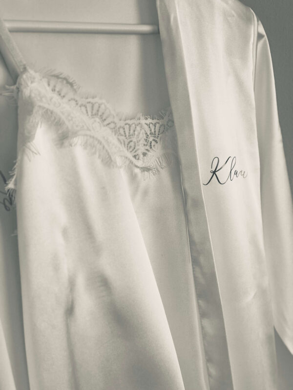A készülődős köntös alá kényelmes viselet a szatén pizsama, ami nagyban megnöveli a komfortérzeted a készülődés alatt.