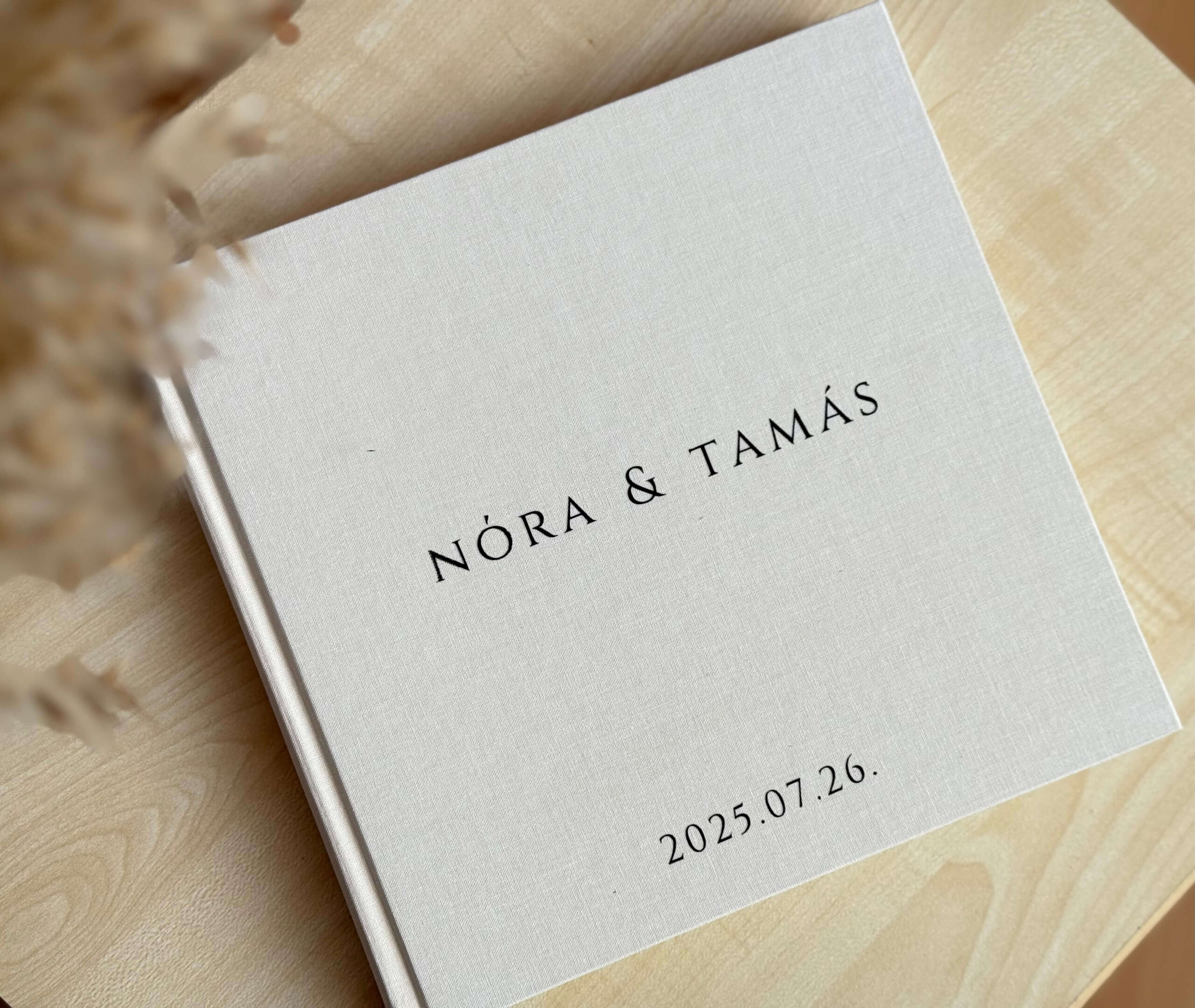 Keményfedeles, bézs, vászon borítású vendégkönyv, vastag lapokkal, így tökéletes alapja lehet egy esküvői vendégkönyvnek, vagy Selfie box albumnak.